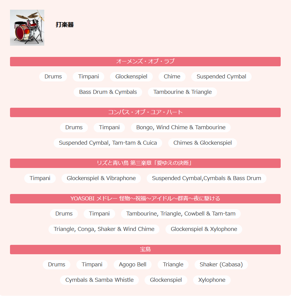 これだけ楽器の種類がありました ↓